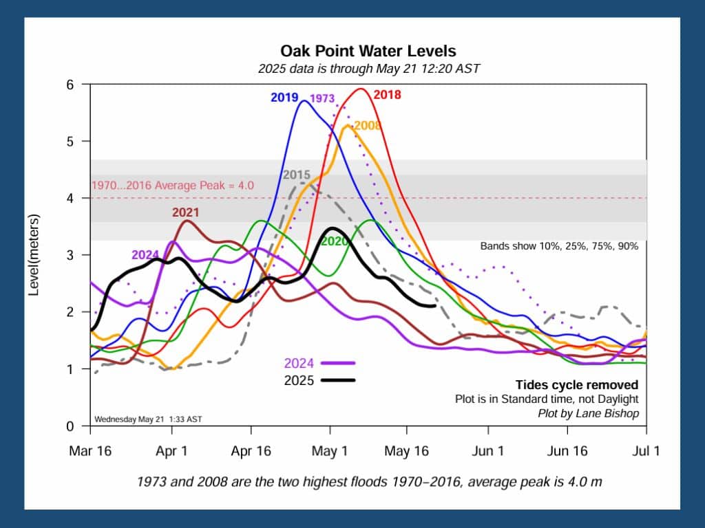 Thanks to Lane Bishop, we’re continuing to keep a close watch on water levels in the Belleisle area as the 2025 freshet progresses.